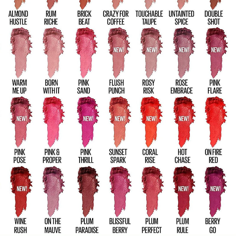 • Available in new, ultra flattering shades, from luscious nudes to head turning reds