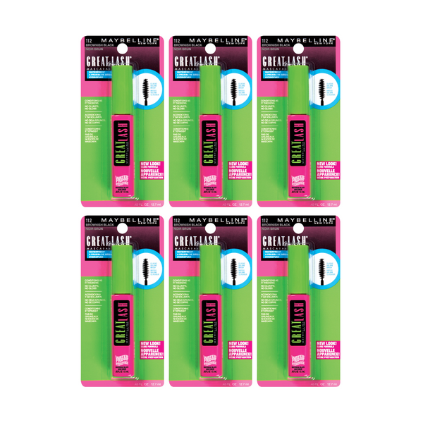 6 x Maybelline Great Lash Waterproof Mascara 112 Brownish Black6 x Maybelline Great Lash Waterproof Mascara 112 Brownish Black
