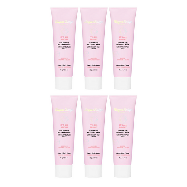 6x SugarBaby It's All Bright Golden Gel Recovery Mask With Kakadu Plum (Vit C) 75g6x SugarBaby It's All Bright Golden Gel Recovery Mask With Kakadu Plum (Vit C) 75g