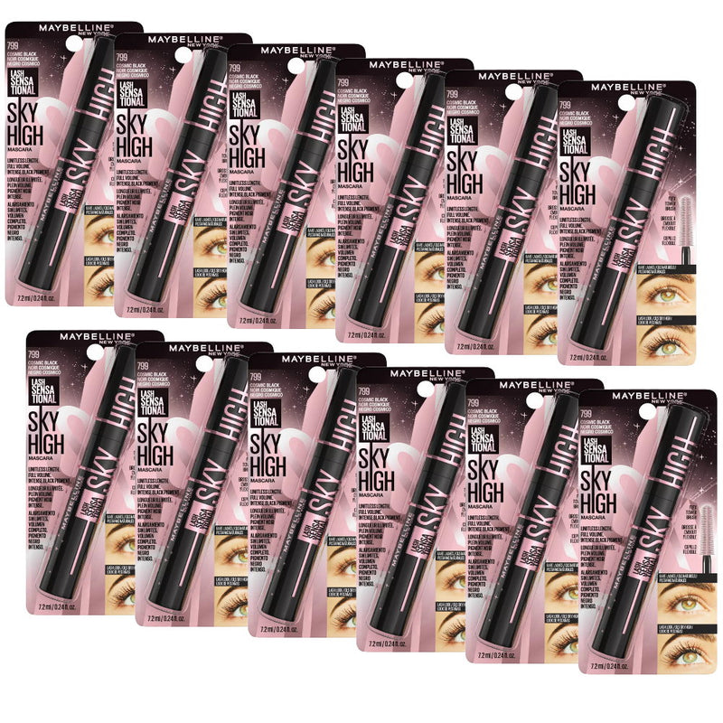 12x Maybelline Lash Sensational Sky High Mascara 7.2ml 799 Cosmic Black (carded)