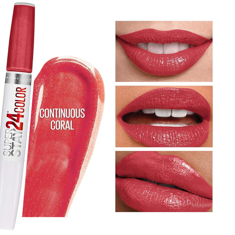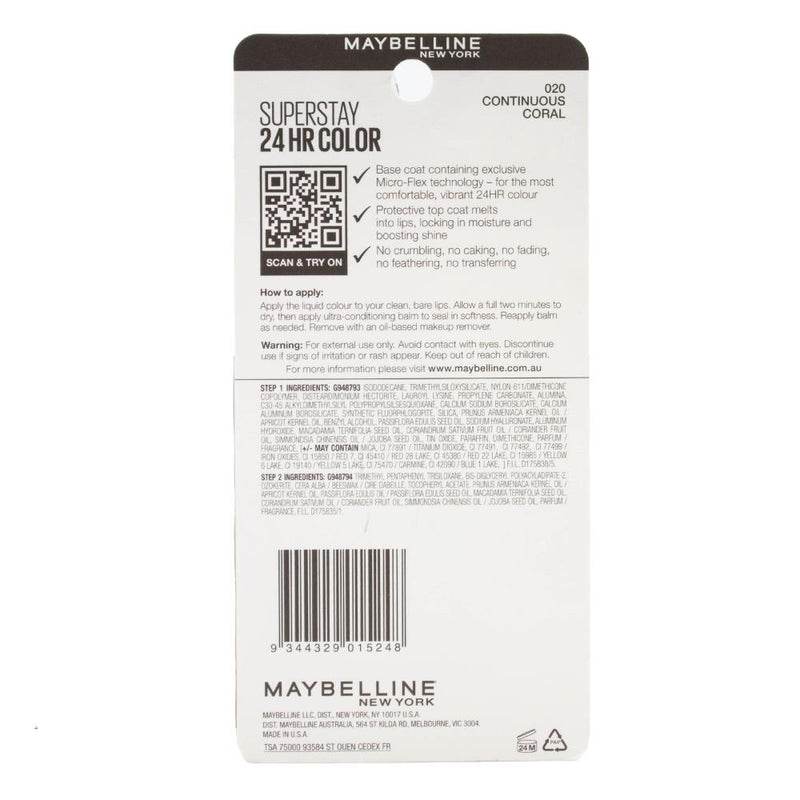 2x Maybelline Superstay 24 Hour Colour 2 Step Lipstick 020 Continuous Coral