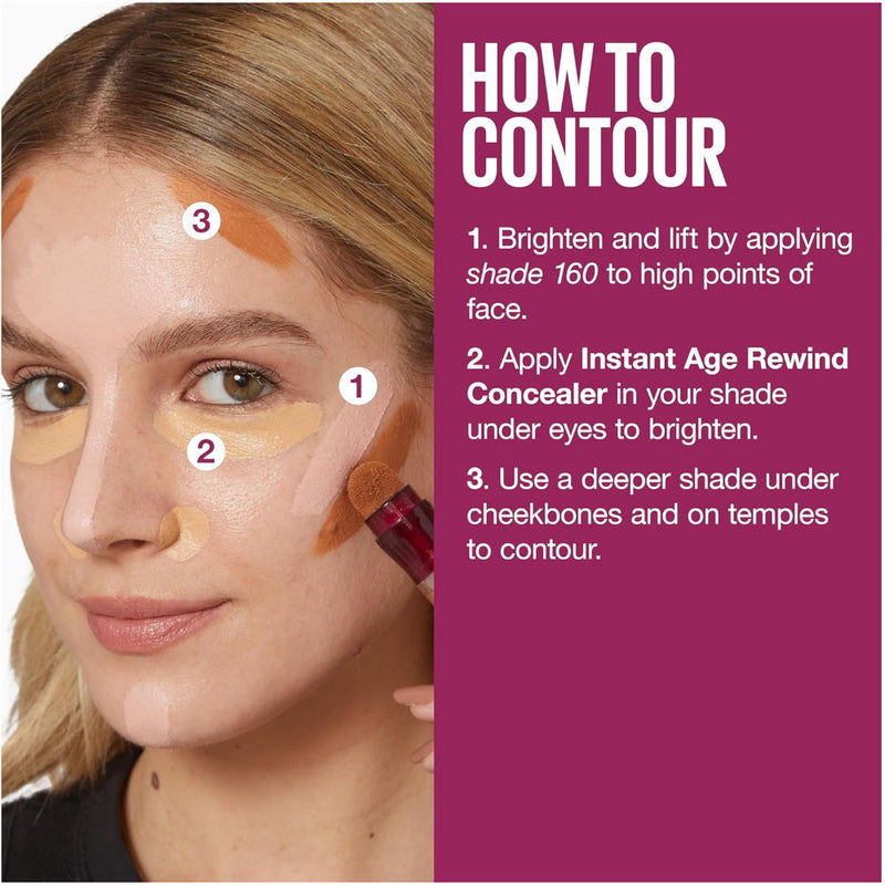 Go beyond concealing! Maybelline Instant Age Rewind Eraser Multi-use Concealer also features an iconic blending tip that conceals, highlights, shapes, and contours!