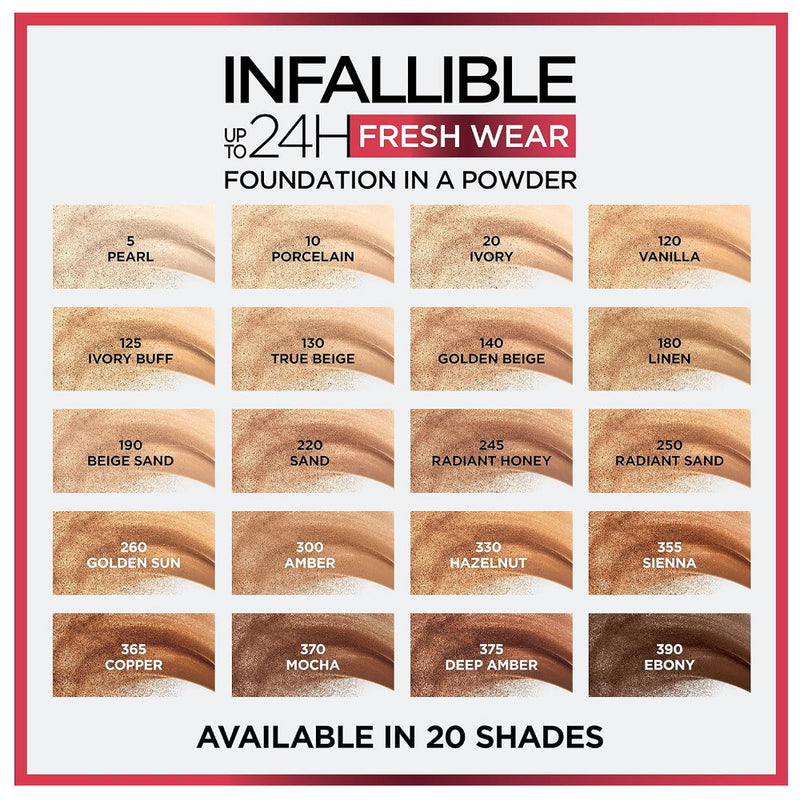 Discover the NEW Infallible 24hr Fresh Wear Foundation in a Powder by L'Oréal Paris which covers and lasts like a fluid, while mattifying with no cakeyness.