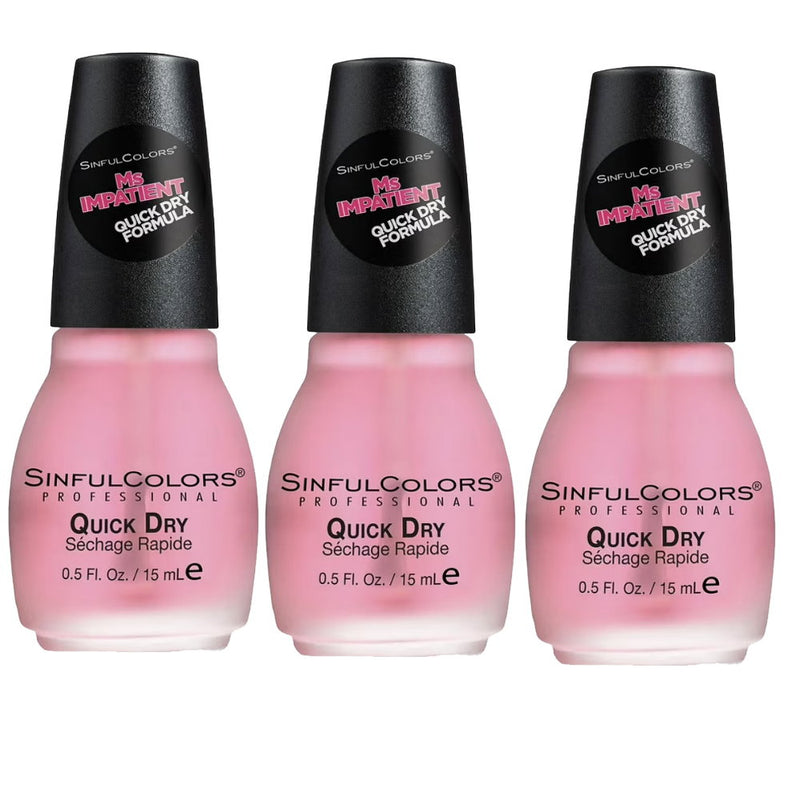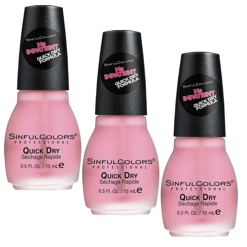 3x Sinful Colors Nail Polish Top Coat 15ml 1706 Ms. Impatient Quick Dry