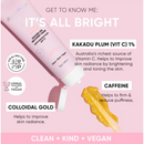 Clean, kind and vegan, ingredients including skin perfecting Colloidal Gold, antioxidant rich Kakadu Plum (Australia’s richest source of Vitamin C), bioactive Coconut Concentrates (think soothing, & incredibly skin-strengthening), PLUS… skin smoothing Green Tea and firming Caffeine.
