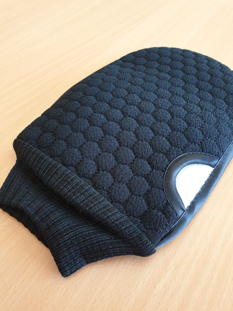 4 x Exfoliating Glove Dual Sided with Thumb Hole Black