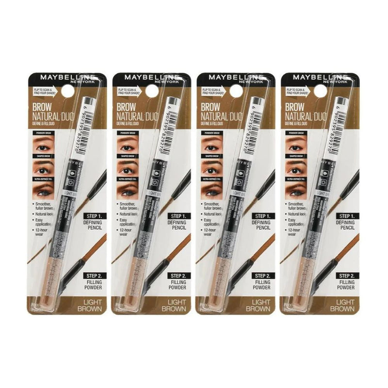 4 x Maybelline Brow Natural Duo Define & Fill Duo Light Brown (Carded)