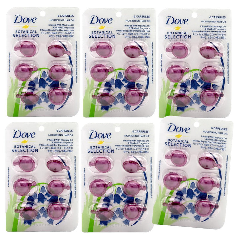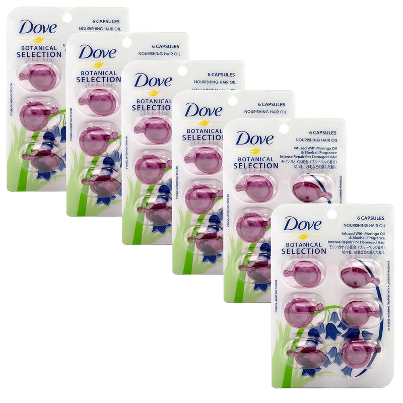 6x Dove Botanical Selection Nourishing Hair Oil Infused With Moringa Oil & Bluebell Fragrance 6 Capsules x 1ml