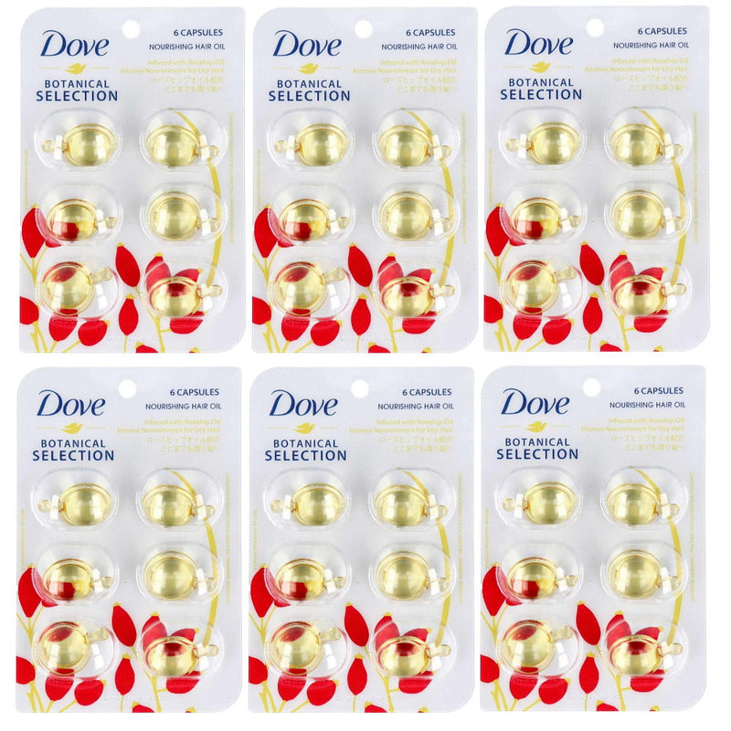 6x Dove Botanical Selection Nourishing Hair Oil Infused With Rosehip Oil 6 Capsules x 1ml