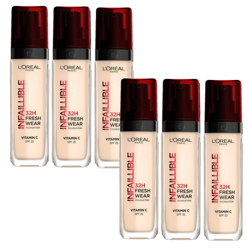 6x LOreal Paris Infaillible 32H Fresh Wear Foundation SPF 25 30ml 130 Cool Rose / Cool Undertone