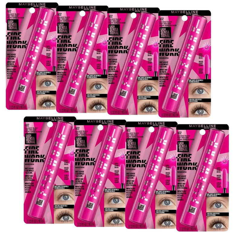 8x Maybelline Lash Sensational Firework Washable Mascara 10ml Blackest Black (carded)