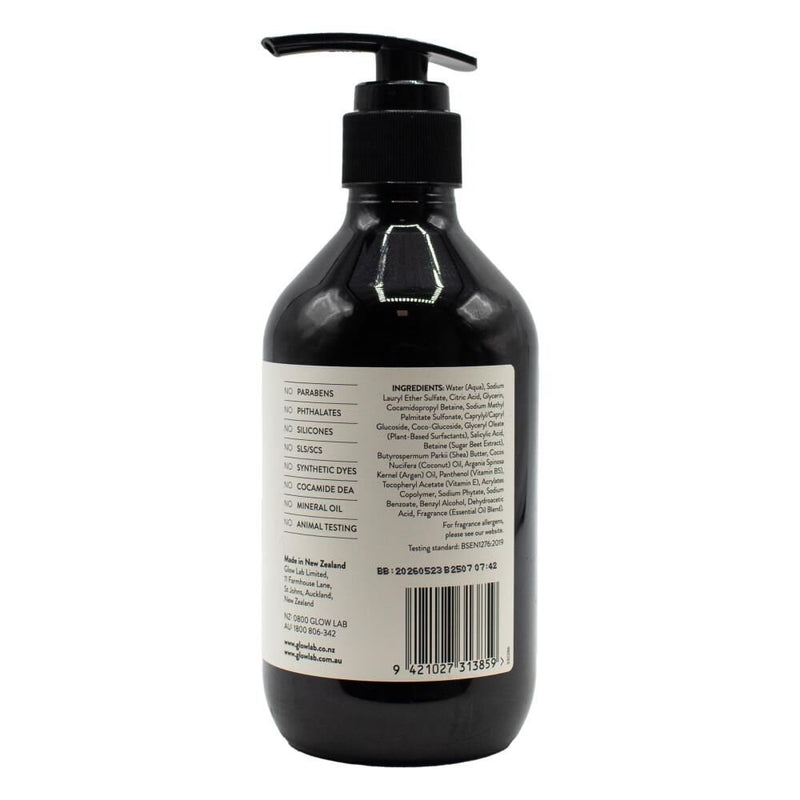 Water (Aqua), Sodium Lauryl Ether Sulfate, Citric Acid, Glycerin, Cocamidopropyl Betaine, Sodium Methyl Palmitate Sulfonate, Caprylyl/Capryl Glucoside, Coco-Glucoside, Glyceryl Oleate (Plant-Based Surfactants), Salicyclic Acid, Betaine (Sugar Beet Extract), Butyrospermum Parkii (Shea) Butter, Cocos Nucifera (Coconut) Oil, Argania Spinosa Kernel (Argan) Oil, Panthenol (Pro-Vitamin B5), Tocopheryl Acetate (Vitamin E), Acrylates Copolymer, Sodium Phytate, Sodium Benzoate, Benzyl Alcohol, Dehydroacetic Acid, Fragrance (Essential Oil Blend).