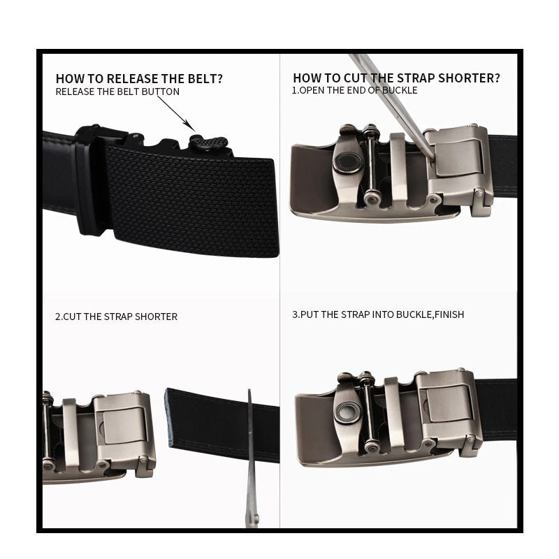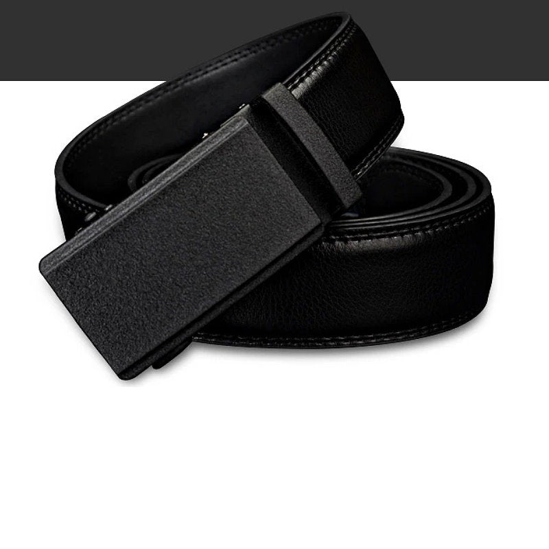 OSKA Men’s Belt Cow Genuine Leather Automatic Ratchet Buckle Black