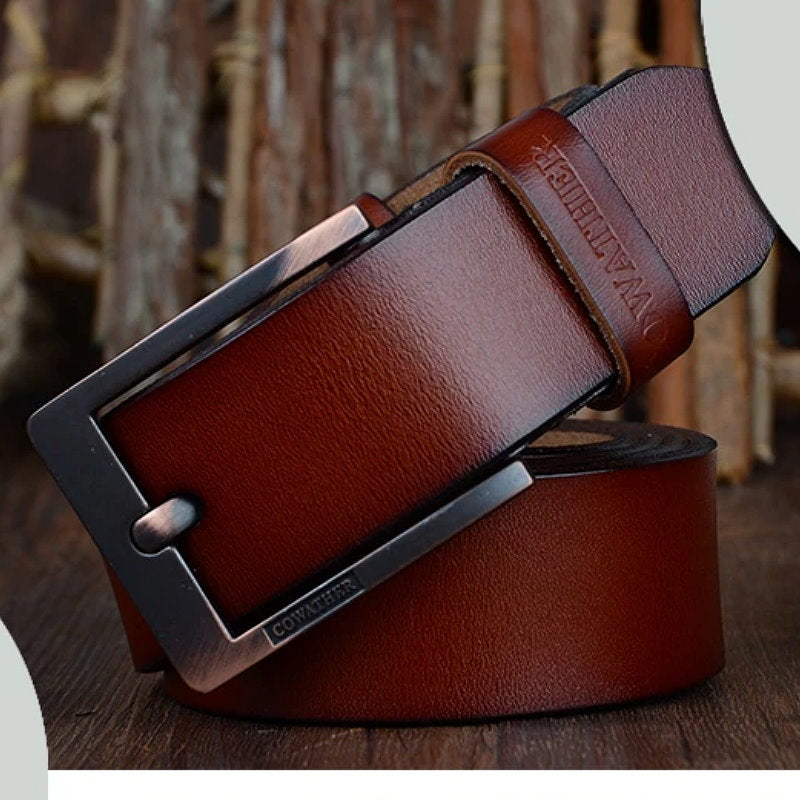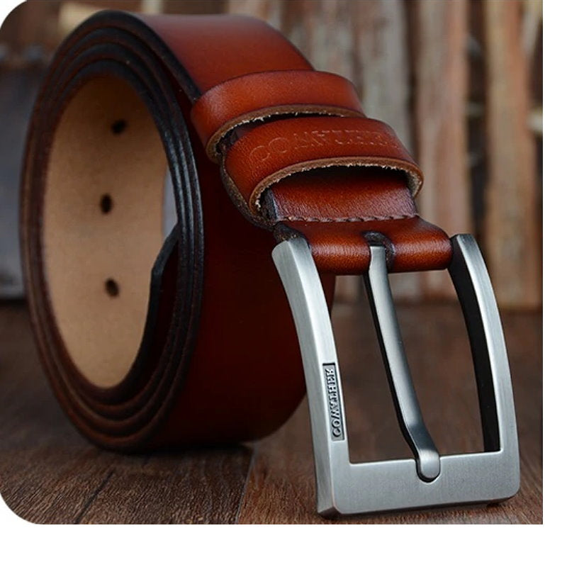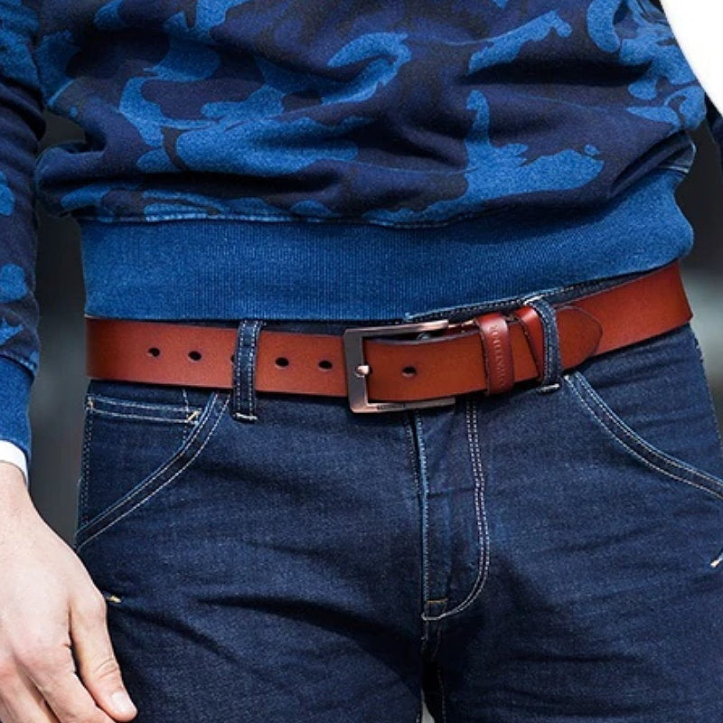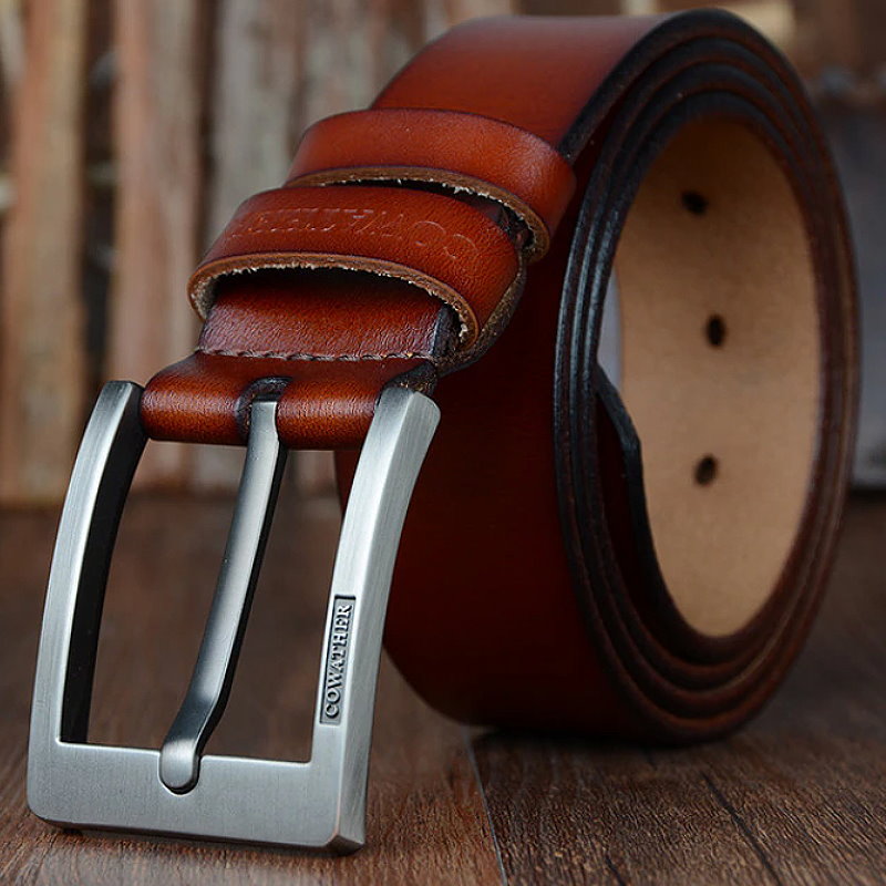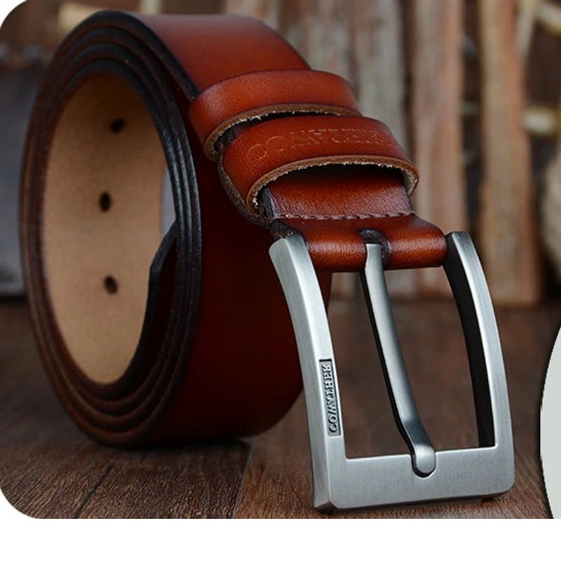 OSKA Men’s Belt High Quality Genuine Cow Leather Buckle Brown