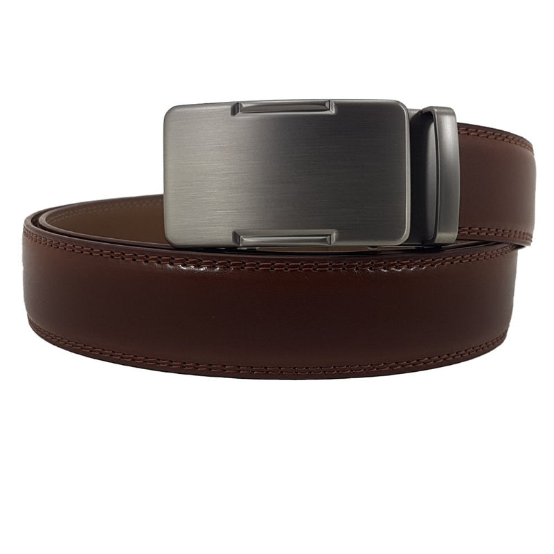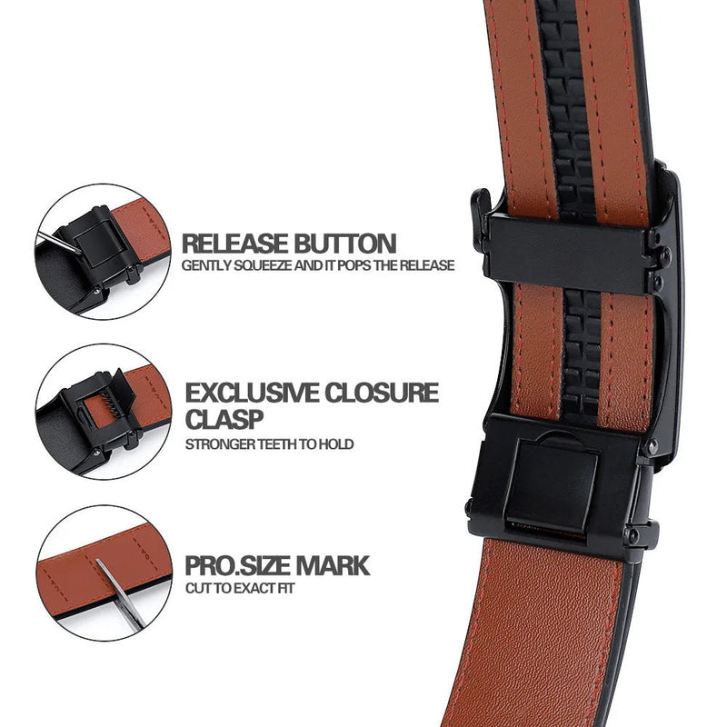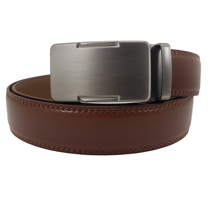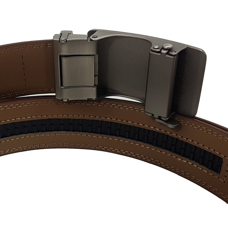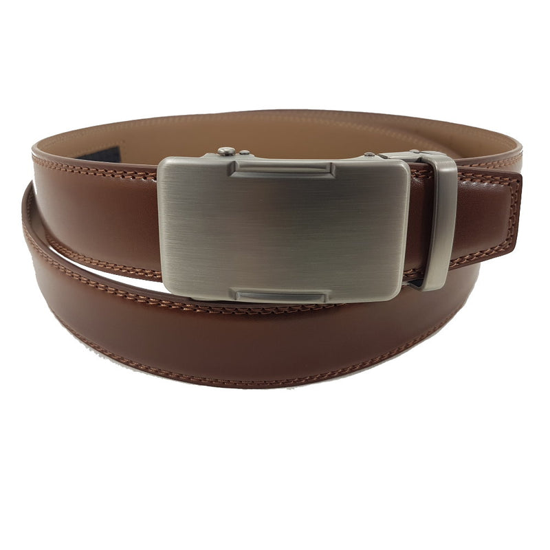 OSKA Men’s Luxury Belt Genuine Leather Automatic Step Buckle Matt Silver Tan Brown