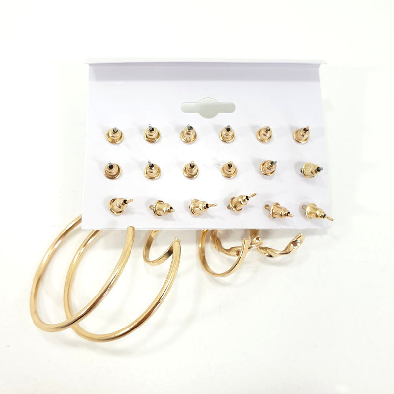 Rosy Lane 9 Pairs Assorted Stud and Hoop Earrings - Gold